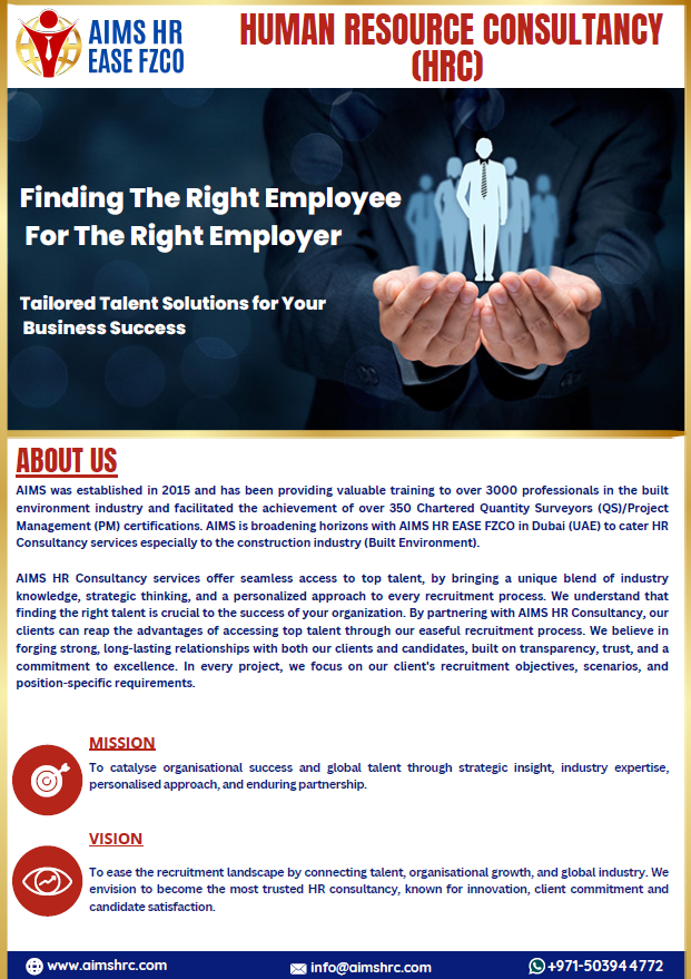 2. AIMS is broadening its horizons with AIMS HR EASE FZCO in Dubai (UAE) to cater HR Consultancy services, especially to the construction industry (Built Environment).